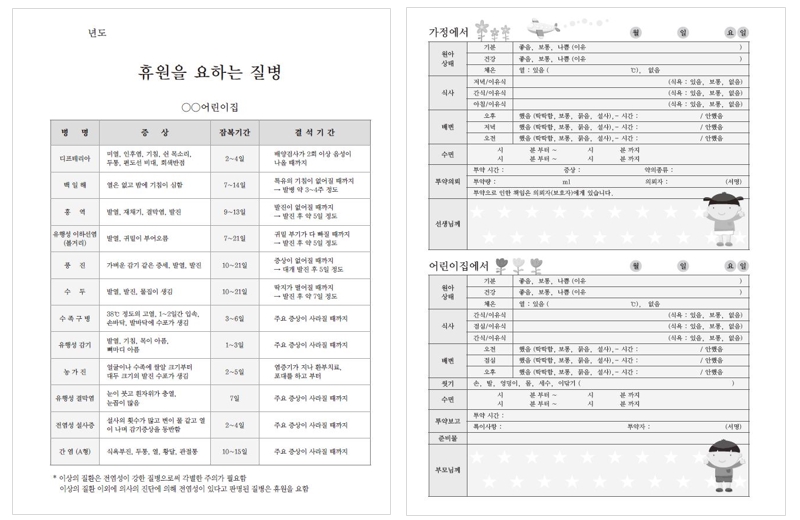 3. 표준예방접종일정표, 휴원을 요하는 질병 표 추가