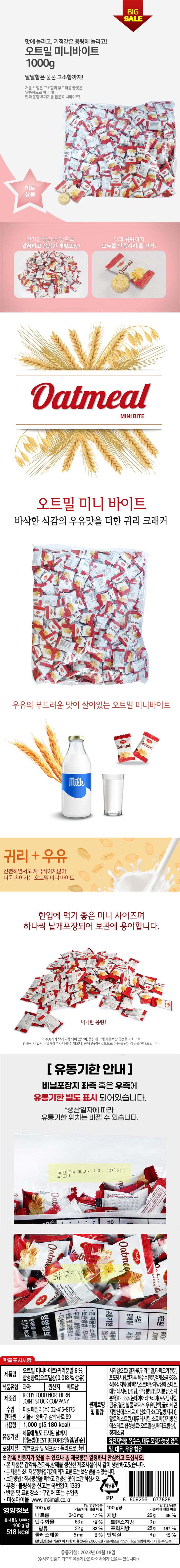 오트밀 미니바이트 귀리 대용량 과자 1Kg (약 400개 낱개포장)