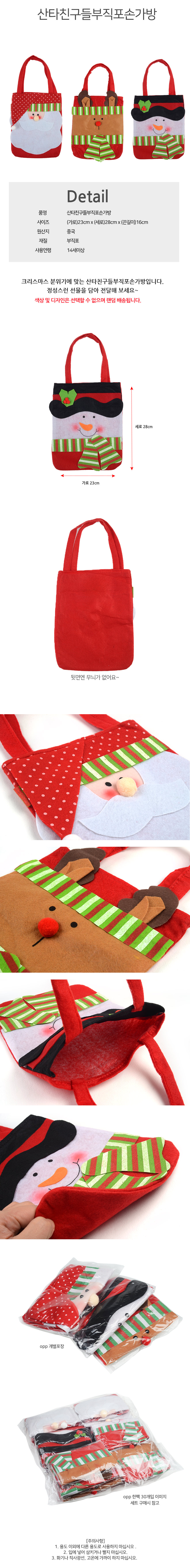 산타 친구들 부직포 손가방[3개] 손가방 선물가방 크리스마스선물
