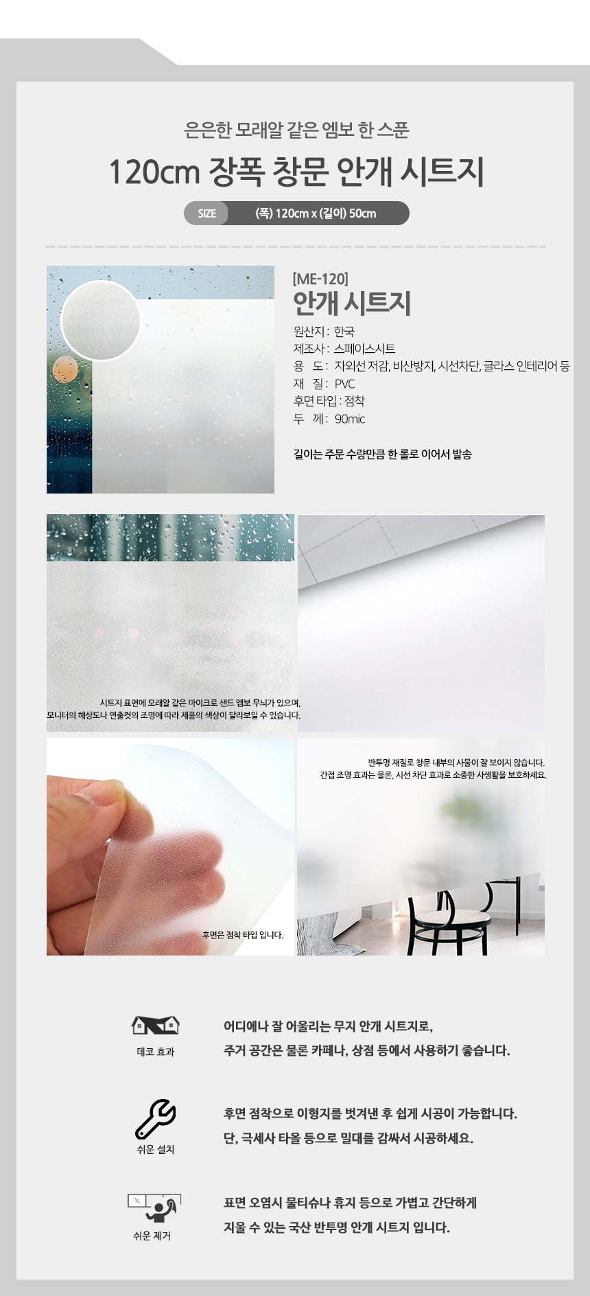 국산 반투명 안개시트지 엠보글라스 50cm 모음