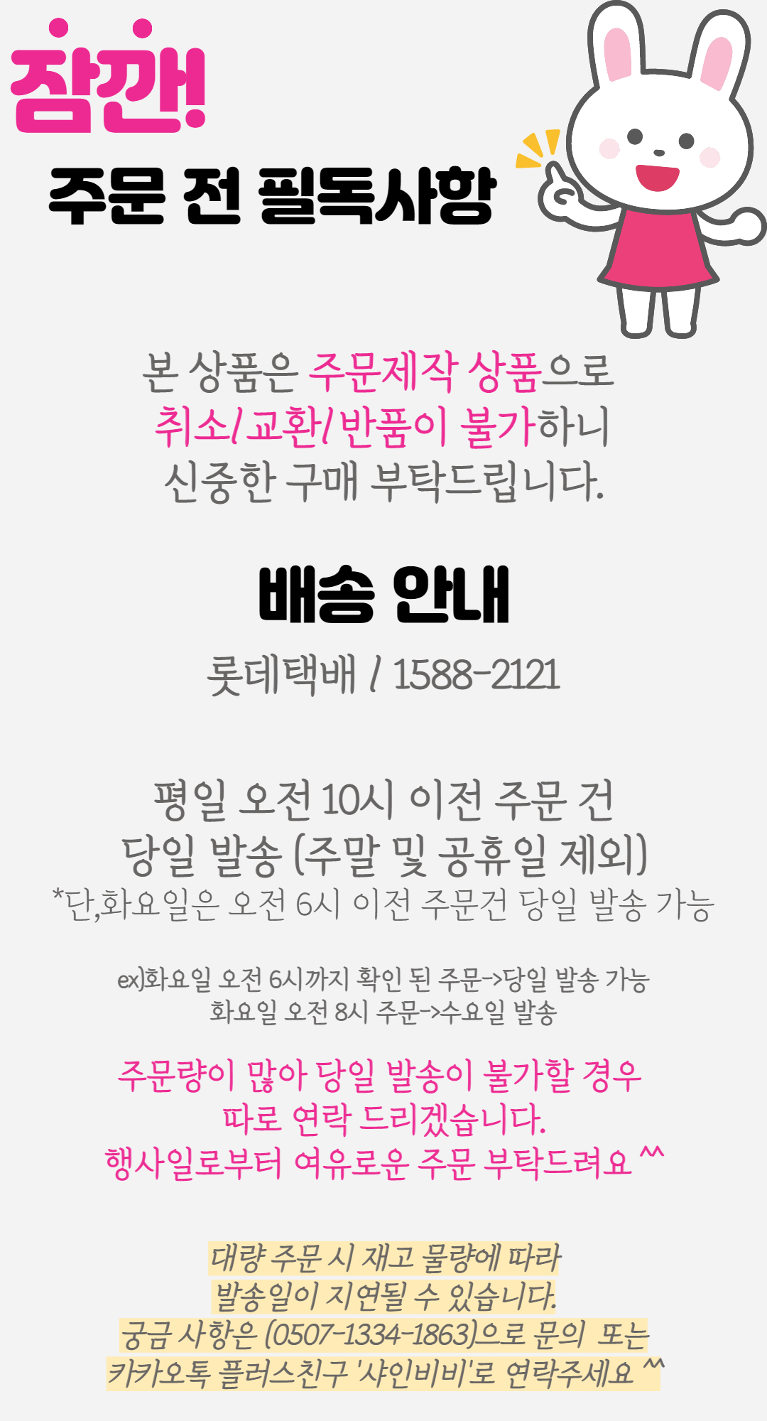 주문 제작 상품으로 반품/교환/환불 불가합니다.