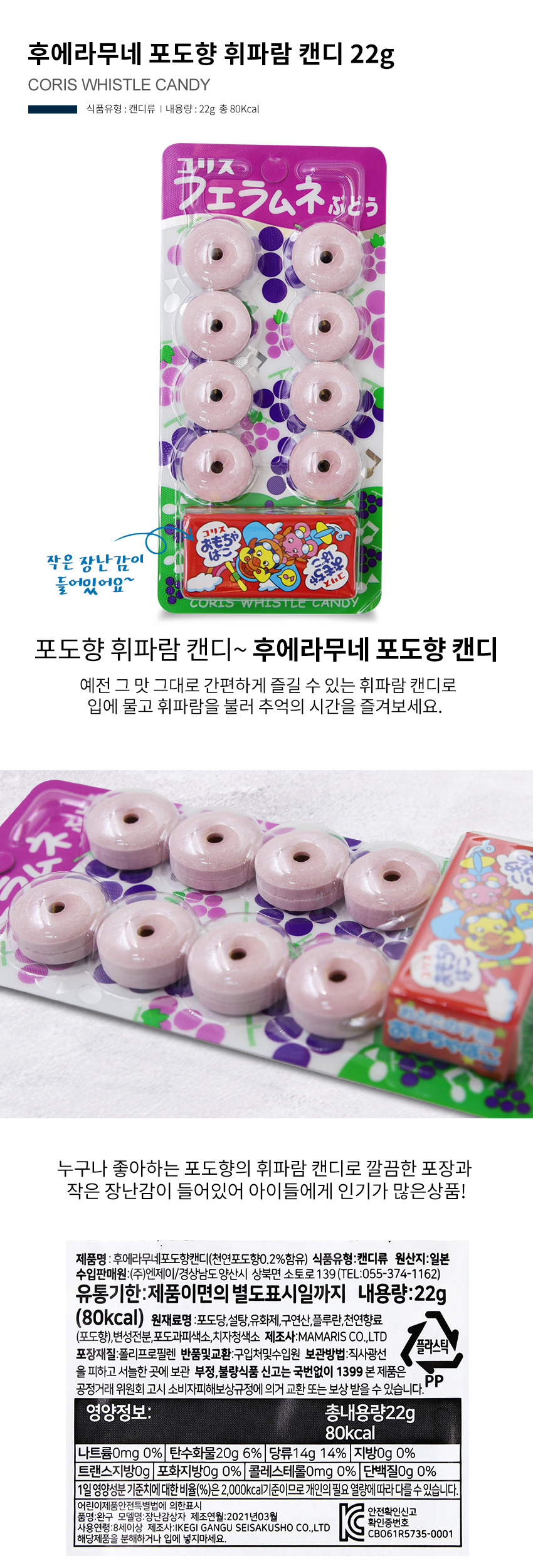 후에라무네 포도향 휘파람 캔디 22g