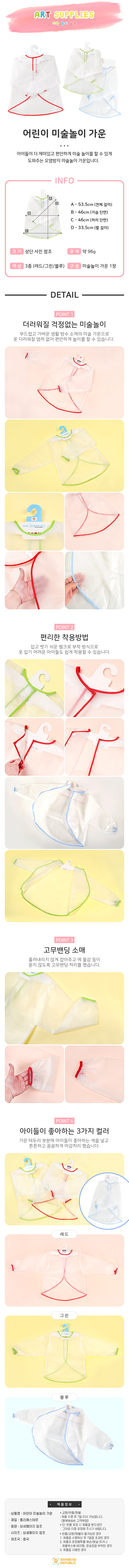 레인보우리퍼블릭 어린이 미술 놀이 가운(레드)