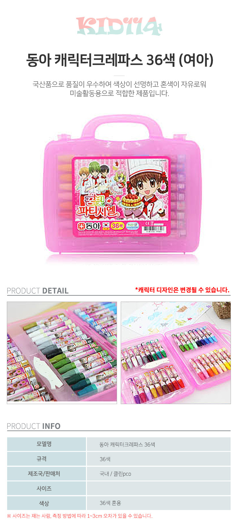 f09 동아 캐릭터크레파스 36색 여아용(캐릭터랜덤)
