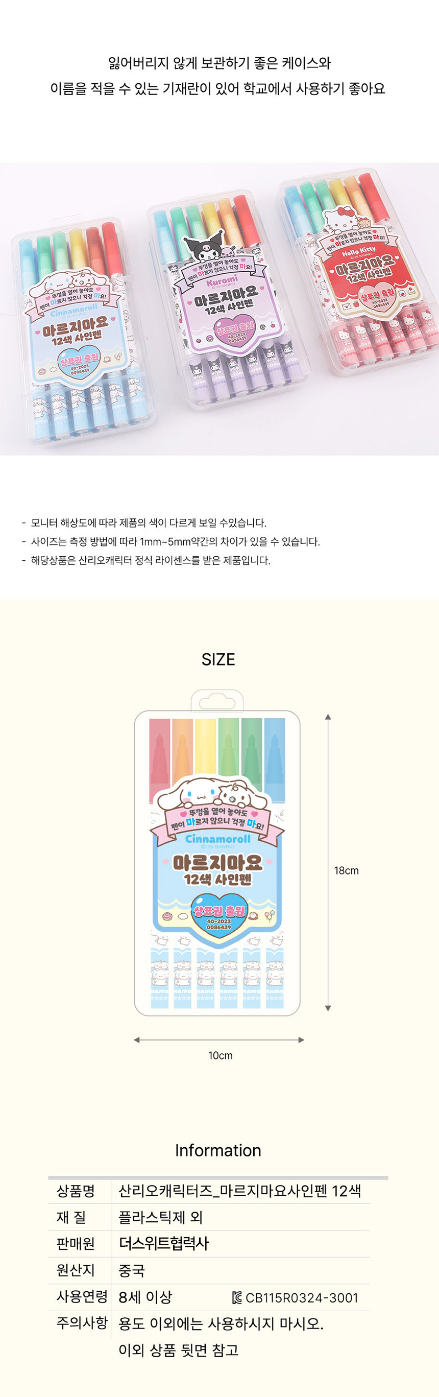 산리오 마르지마요 12색 사인펜 캐릭터문구