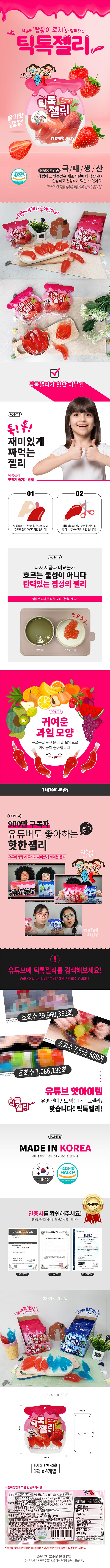 쌍둥이 루지 틱톡 젤리 딸기 (40g x 4개입) 160g