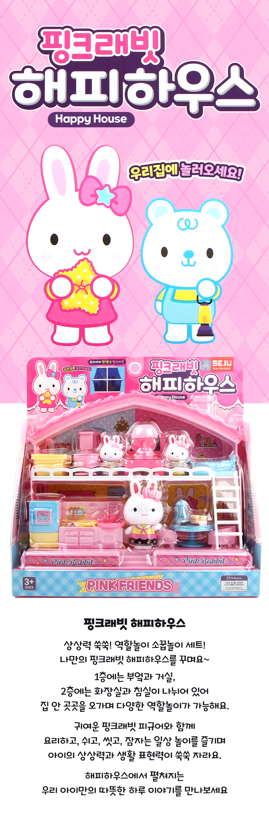 핑크래빗 해피하우스 인형집 역할 소꿉놀이 장난감