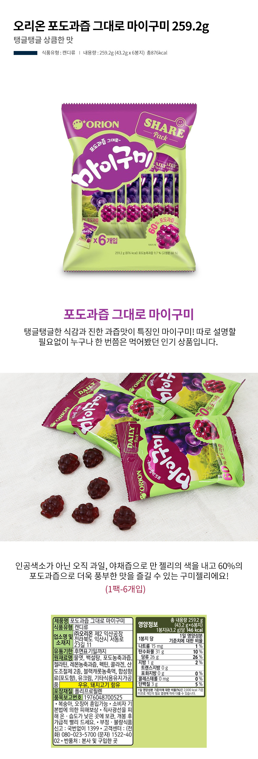 오리온 포도과즙 그대로 마이구미 (6P) 259.2g