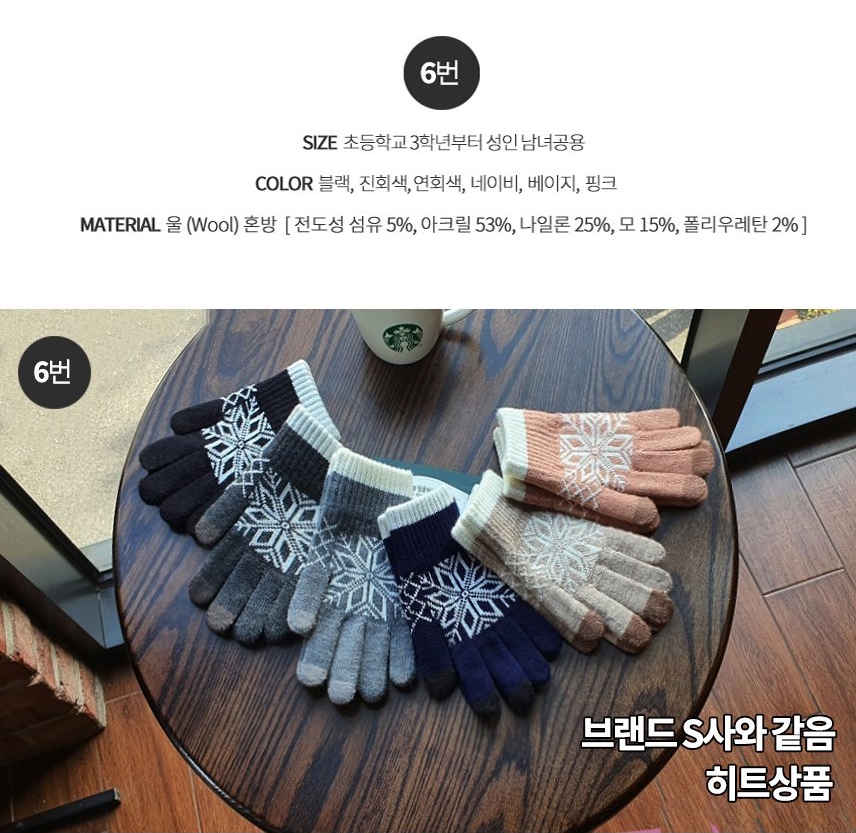 스마트폰 터치장갑- 6번 /기모안감/겨울철 보온, 방한