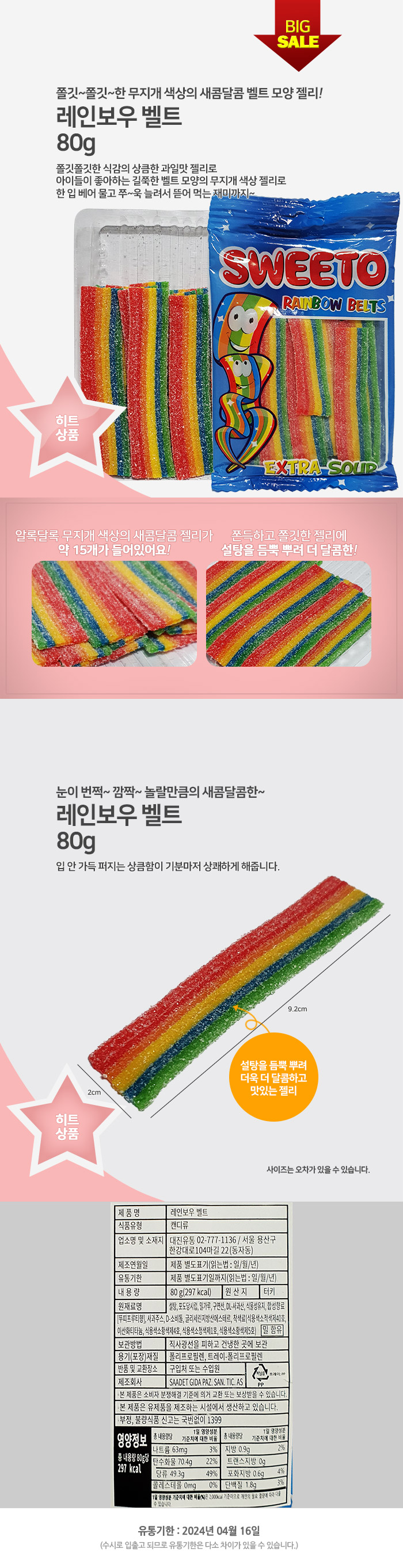 SWEETO 레인보우 벨트 새콤달콤 무지개 사우어 젤리 80g