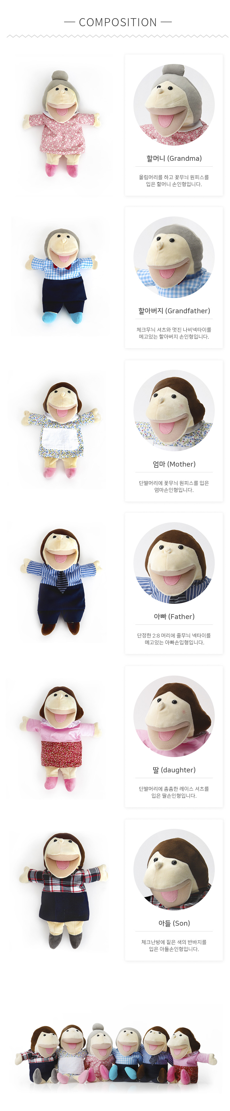뚜시베베 입벌리는 가족 손인형6종
