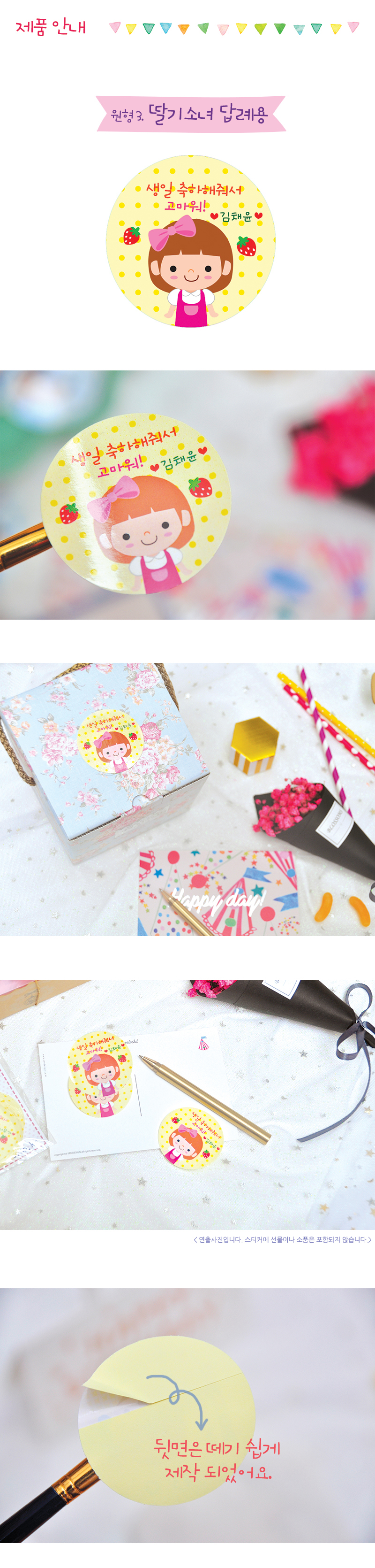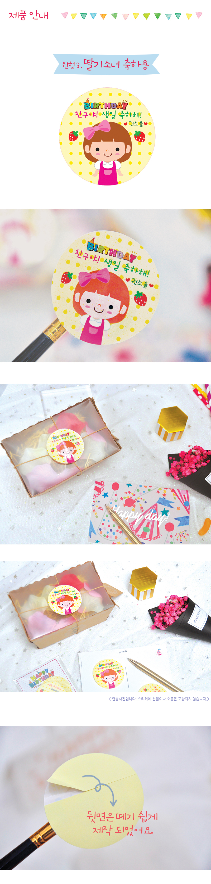 03.원형 딸기소녀생일전용스티커 50mm -24ea