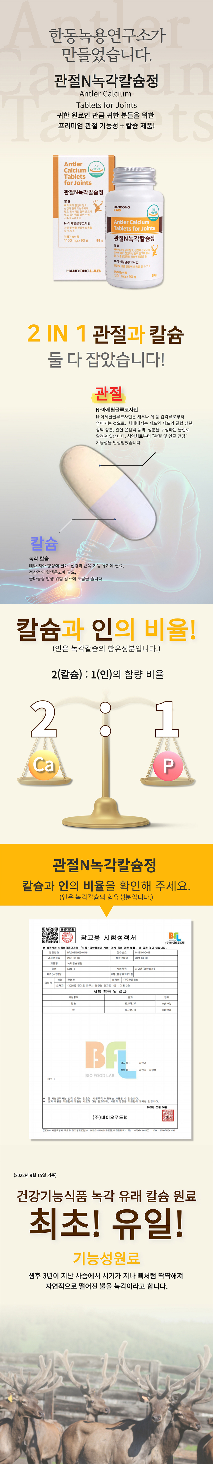 한동 관절N 녹각 칼슘 정 2박스 2개월 뼈 무릎 관절 칼슘제 건강기능식품 영양제 골다공증