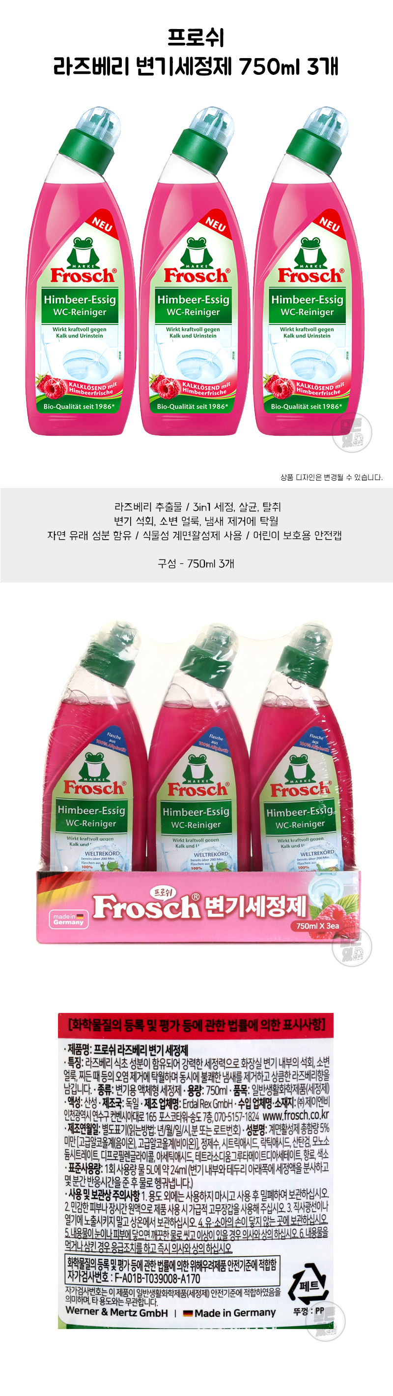 프로쉬 라즈베리 변기 세정제 750ml 3개 욕실 화장실 청소 세제 곰팡이 락스 악취 냄새 제거