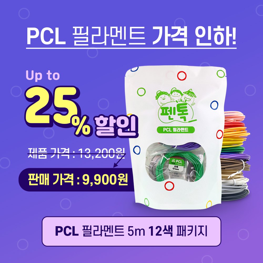 [펜톡] 3D펜 뉴펜톡 플러스 + PLA 필라멘트 5m 20색 패키지
