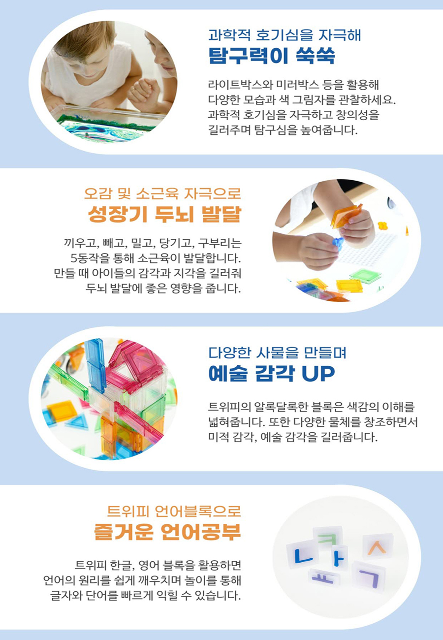 대한민국 개발 및 제조  "트위피" 투명블럭 이 있습니다.