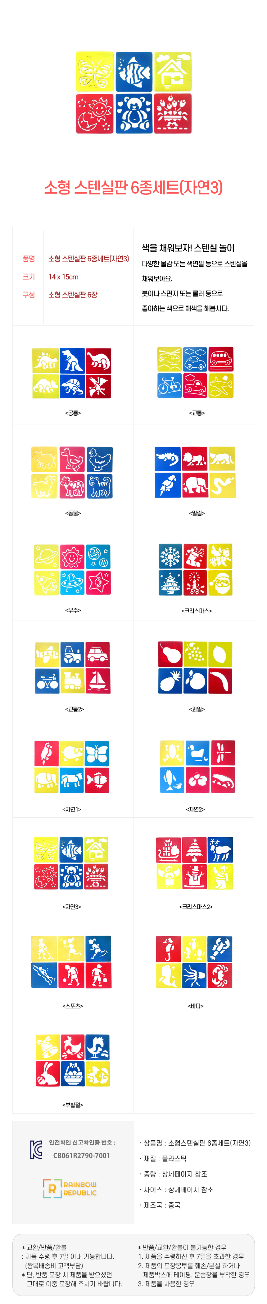 레인보우리퍼블릭 소형 스텐실판 6종 세트 (자연3)